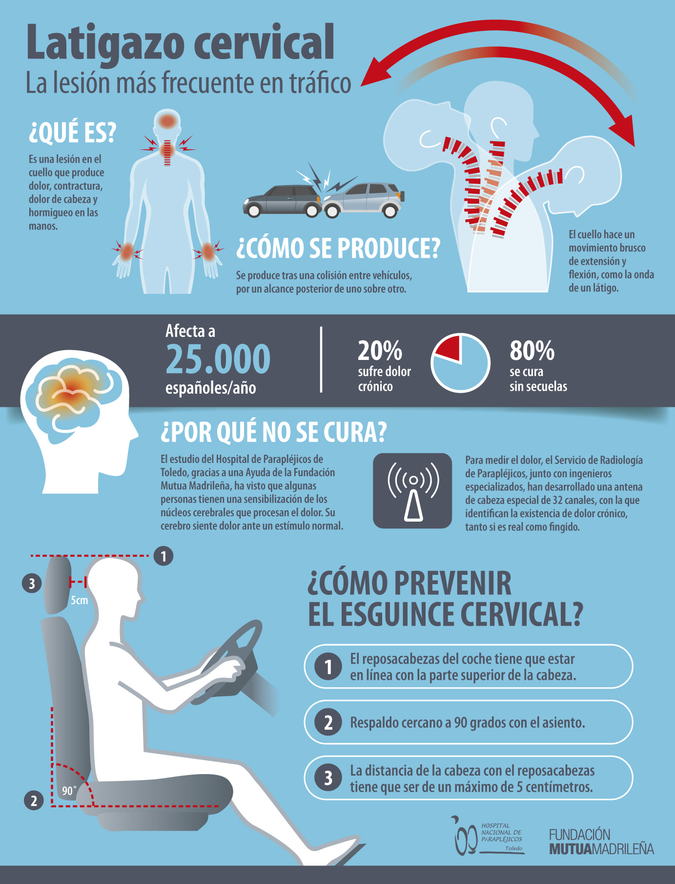 El seguro y la ciencia ponen día a día barreras al fraude más temido para el sector asegurador: el latigazo cervical. Un equipo multidisciplinar del Hospital Nacional de Parapléjicos de Toledo ha desarrollado una metodología basada en técnicas de imagen que permite visualizar la presencia del dolor en pacientes con esguince cervical crónico tras un accidente de tráfico.